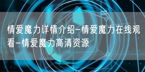 想要了解更多关于情爱魔力的详情吗?想要观看情爱魔力高清资源吗?现在就行动起来,通过在线观看平台,一睹情爱魔力的精彩内容。