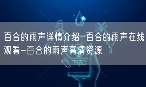 想要在线观看《百合的雨声》吗?这里为你提供便捷的观看途径。只需通过搜索引擎或视频平台,即可轻松找到这部作品。在在线观看时,你不仅可以随时随地欣赏到精彩的剧情,还能享受到高清的画质和流畅的观影体验。