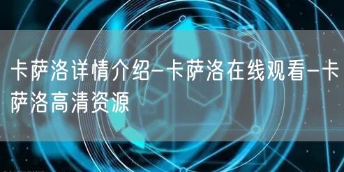 本文不仅为您带来卡萨洛电影的详细介绍,还为您提供在线观看及高清资源下载服务,是您观影路上的得力助手。希望您能够喜欢并分享这篇文章,让更多的人了解并欣赏到这部优秀的电影作品。