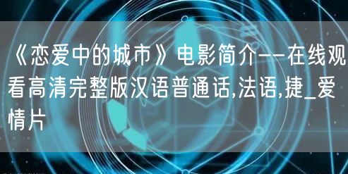 《恋爱中的城市》电影简介--在线观看高清完整版汉语普通话,法语,捷_爱情片