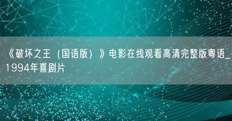 《破坏之王》是一部于1994年上映的喜剧片,由香港著名导演执导,汇聚了一流的演员阵容。这部电影以其幽默的剧情和出色的表演赢得了观众的喜爱。如今,我们可以在线观看这部经典之作的高清完整版粤语版本,再次感受其中的欢乐与魅力。