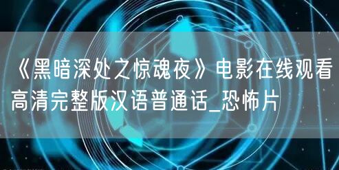 我们为大家提供了《黑暗深处之惊魂夜》电影在线观看高清完整版汉语普通话的资源。您只需点击链接,即可开始您的观影之旅。影片画质清晰,音效震撼,让您身临其境地感受电影的惊悚氛围。