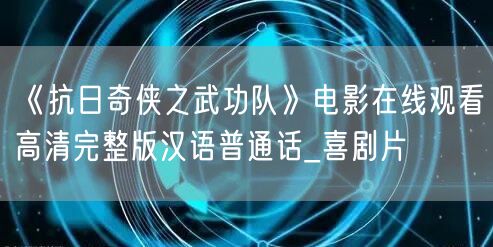 现在,您可以在线观看《抗日奇侠之武功队》高清完整版了。让我们一起感受这部汉语普通话喜剧片的魅力,一起回顾那段不平凡的历史。